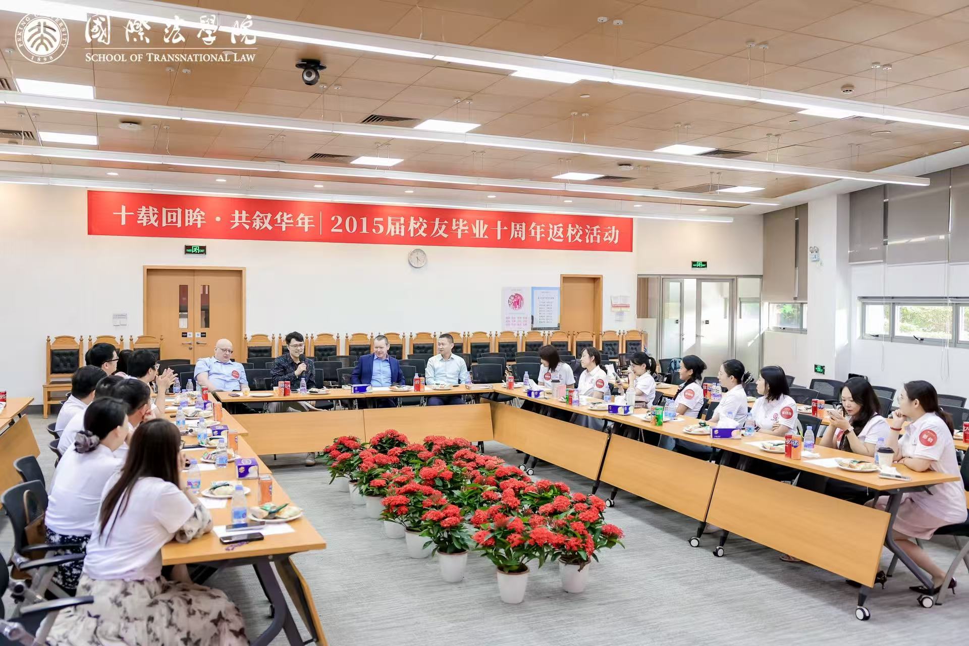 2025年10月18日,北京大学国际法学院2015届校友从全国各地重返母校,齐聚国法大楼,参加毕业十周年返校活动。