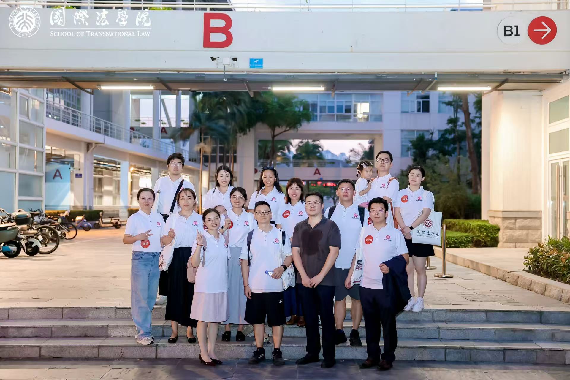 活动尾声,全体校友与师长在新大楼大台阶处合影留念,齐声喊出“十载回眸,共叙华年”,定格下重逢的温馨瞬间。合影后,志愿者们引导校友们游览深圳研究生院,参观了曾经的B栋办公楼和C栋教学楼,以及此后陆续设立的国法大楼和学生活动中心。沿着大沙河回到学院后,校友们仍意犹未尽,或交换联系方式约定行业交流,或主动与在校生分享实习与职业规划建议,“校友群里多互动”、“下次聚会再相见”成为大家的共同约定。