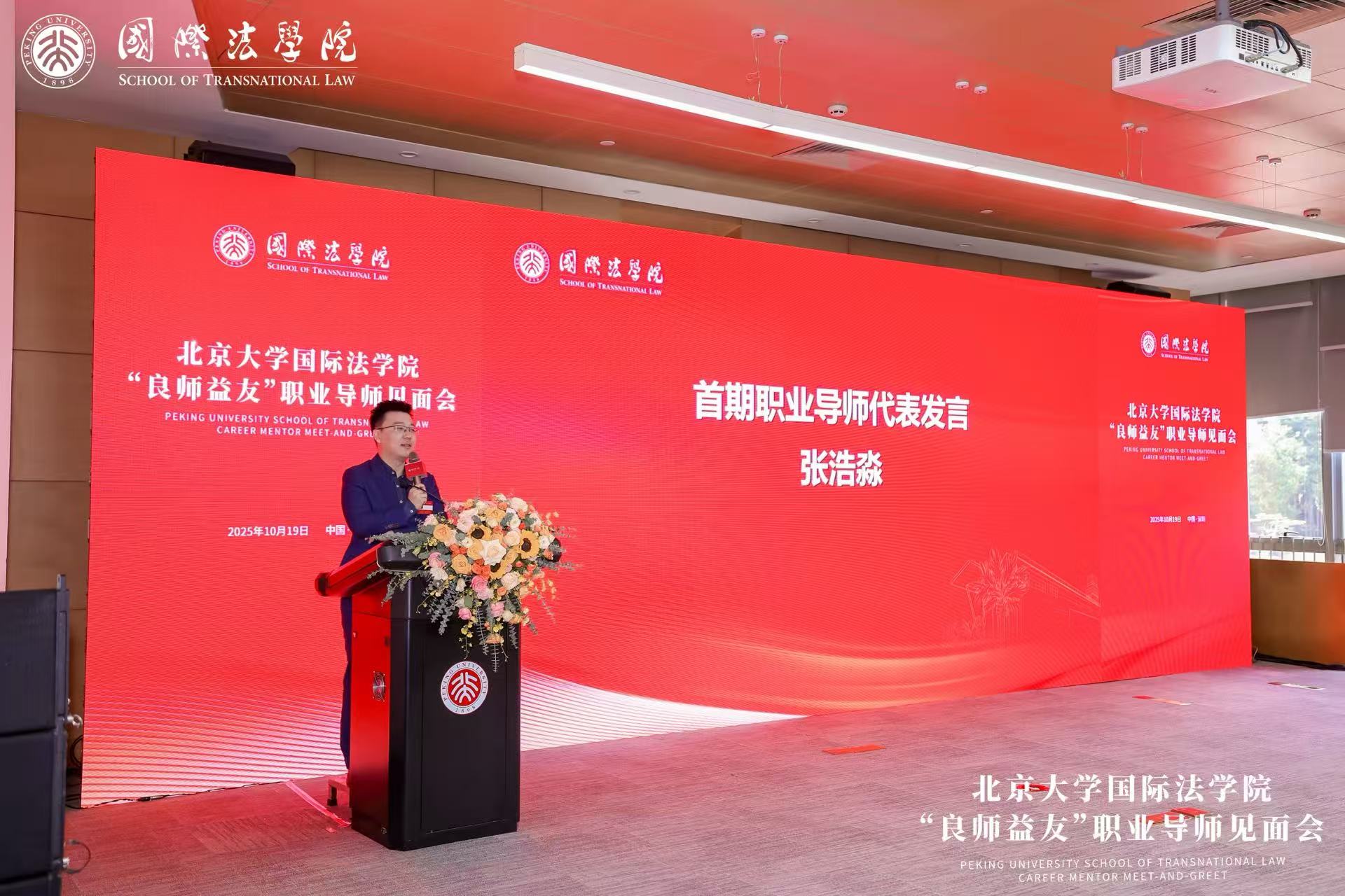 活动伊始,北大国际法学院助理院长张趁利老师代表学院致开幕词,回顾了职业导师计划的发展脉络:自2022年发起以来,项目始终以“培养具有国际视野的跨国法律人才”为核心,首期便集结70余位校友导师构建公益交流平台,三年间助力众多学子明确职业方向、进入顶尖律所、企业或公共服务领域。