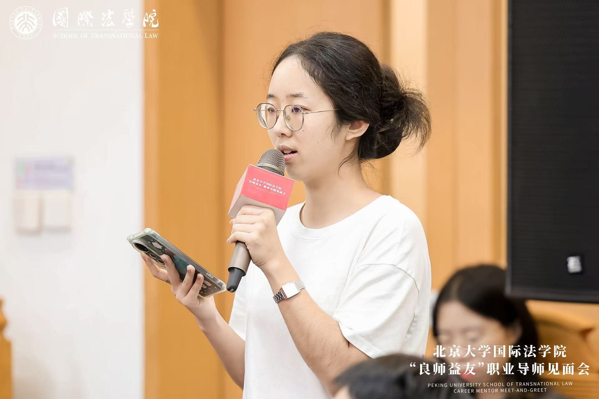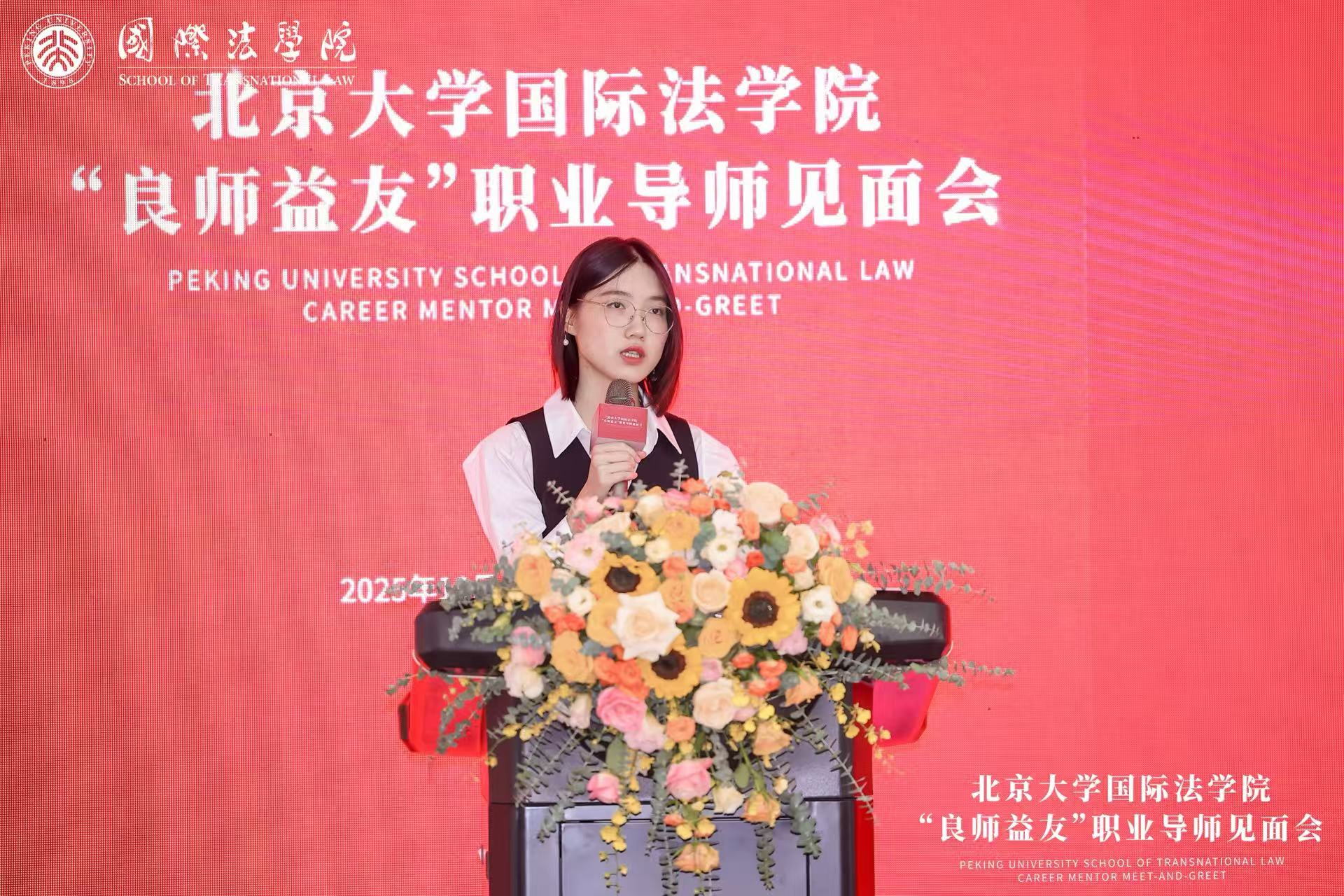 北大国法2026届学生代表罗思颖分享了与导师的互动经历。她提及,在对职业方向感到迷茫时,导师通过及时沟通、以“启发式提问”引导她自主梳理定位,让她明白“沟通不必等万事俱备,但需有备而来”——提前做好基础信息收集、明确交流目标,才能让导师的指导更具针对性。她代表学生感谢学院搭建平台,表示将主动把握与导师交流的机会,在实践与反思中靠近理想职业。