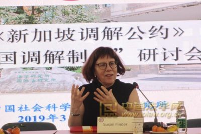 3月18日,北京大学国际法学院常驻学者Susan Finder参与组织由中国社会科学院重点建设学科、国际法研究所国际经济法研究室主办的“《新加坡公约》与中国调解制度”研讨会,与来自全国人大外事委员会法案室、最高人民法院民四庭、商务部条法司、中国社会科学院国际法研究所、中国政法大学、外交学院、中伦律师事务所等单位的专家学者就话题进行探讨。