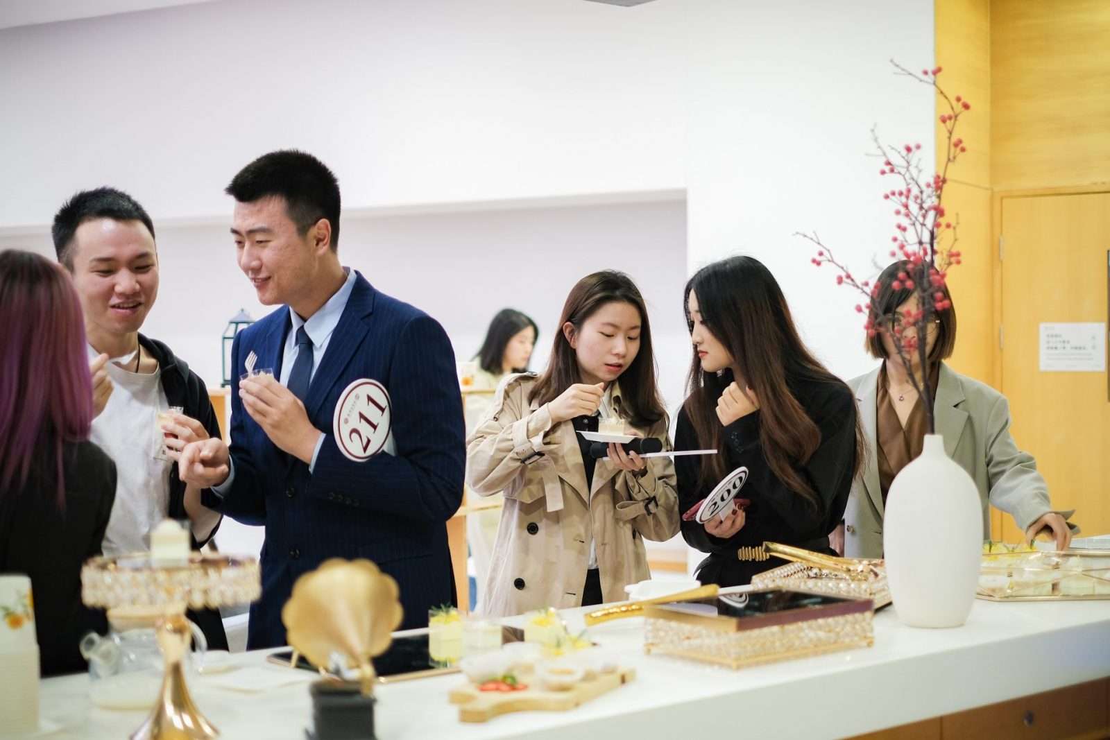 PILF为现场来宾准备了丰盛的甜点餐品,大家欢聚一堂,尽情畅谈,分享职业经验,探讨前沿话题。与此同时,公益法律拍卖会的“无声拍卖”部分正式开始。无声拍卖的40多件拍品以拍卖单上最高报价为成交价,没有有声拍卖的时间限制,更方便大家考量竞价,衡量目标拍品。无声拍品的丰富与趣味丝毫不逊于有声拍卖。“运动局”“学习局”“职业规划指导”透露着浓厚的国法特色,“畅聊局”“K歌局”“骑行局”则为让大家在繁重的学业中放松调整。“丙烯画”“手绘画”“定制画”令人目不暇接,“纪念币”“收藏品”“签名书”更让人眼花缭乱。