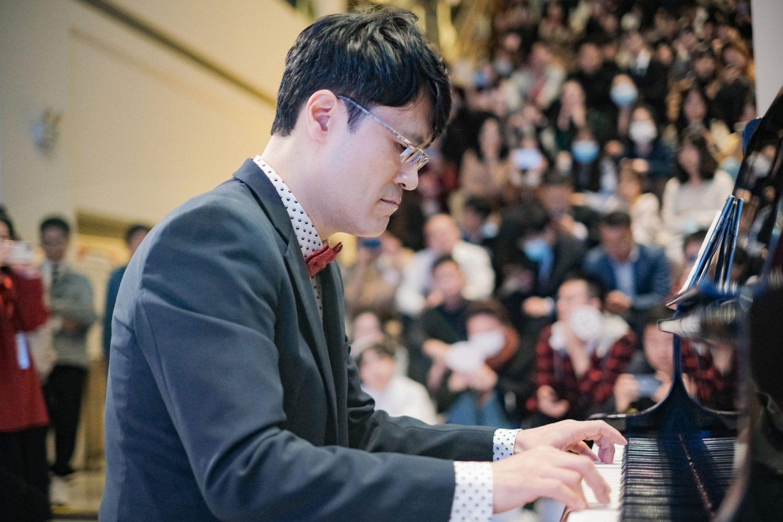 除了竞价激烈的竞拍活动,现场还有精彩纷呈的文艺表演,Prof. Kang为现场嘉宾表演了数首钢琴独奏,琴声婉转悠扬,飘荡在国际法学院的每一个角落,引起了现场阵阵喝彩声;来自清华大学、哈尔滨工业大学(深圳)以及北京大学三校同学组成的TPH舞蹈队向大家表演了舞蹈《scientist》;北大深研院十佳歌手傅晨坤同学为大家带来歌曲《nothing’s gonna change my love for you》将现场气氛推向了小高潮。