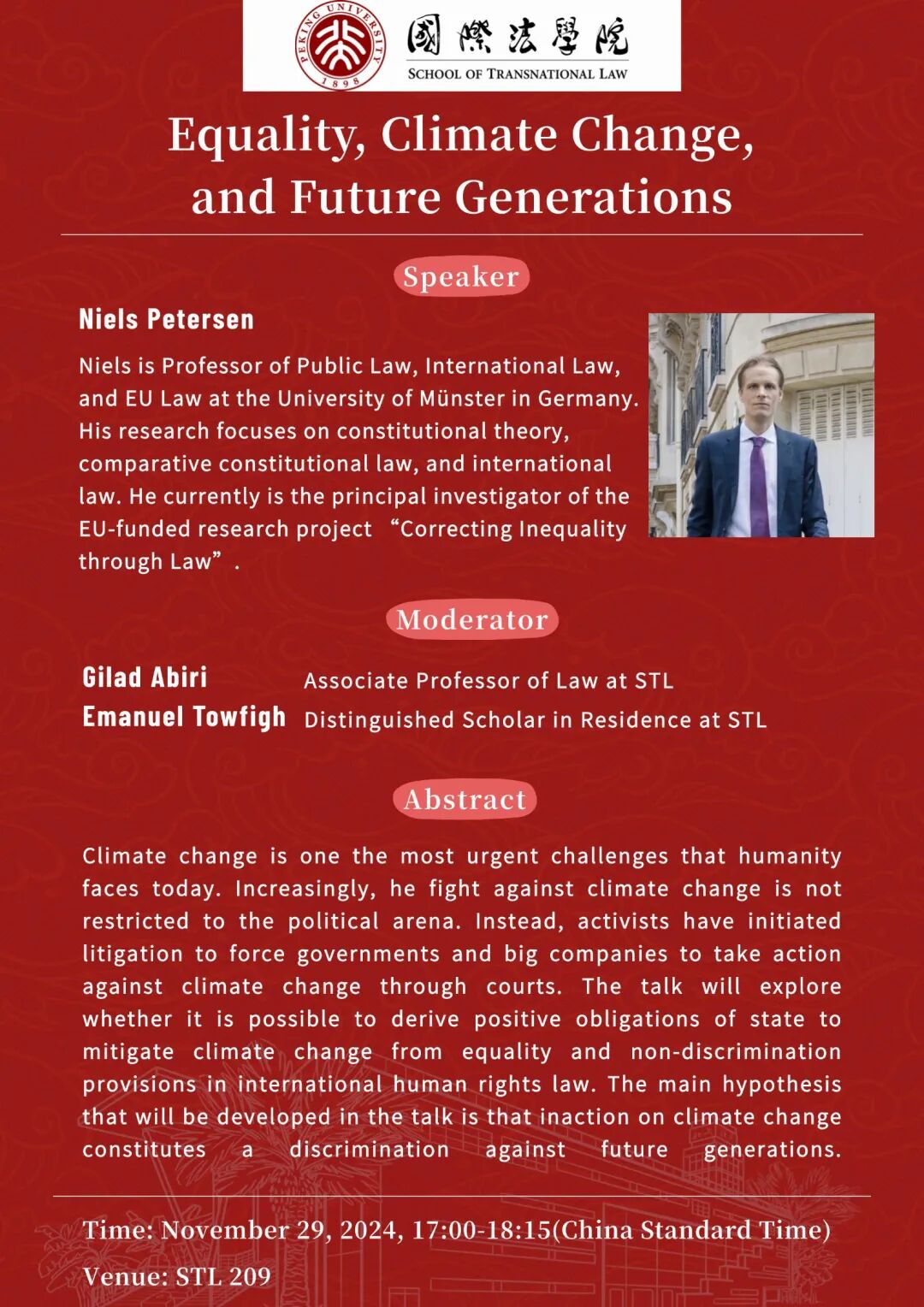 主讲人:Niels Petersen, Professor of Public Law, International Law, and EU Law at University of Münster