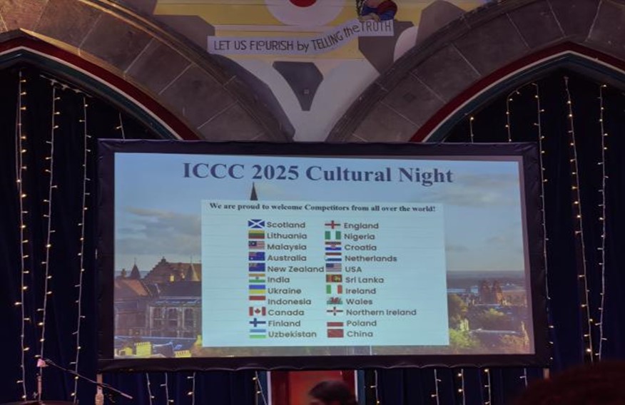 本届ICCC国际赛在活动安排上也十分丰富多彩。在文化之夜上,我和瑾分别穿着汉服和旗袍,展示中国的民族服饰。我们还在现场一起学跳苏格兰传统舞蹈。最后一晚在Kelvingrove Art Gallary and Museum举办晚宴,这个博物馆展出了梵高、莫奈等知名画家的真迹,让我深受震撼。主办方还设置了摄影比赛,鼓励我们记录在格拉斯哥的美好瞬间,凭借瑾的绝美照片,我们荣获了最佳摄影奖!
