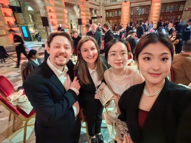 同时,这个参加比赛的过程更是超出我们想象的精彩,主办方从参赛前为我们安排来自中国的志愿者做引导和帮助,到每次比赛场地外都贴心地为我们安排丰富的食物与各色的饮品做补给,从热情地与我们交谈欢迎我们的加入,到每个晚宴场地环节的精心打造都让我们感受到了主办方对这个比赛的重视与用心。与来自其他国家队参赛队员的交谈与认识更是一件非常愉悦的过程,我们和其他国家的同学以及格拉斯哥大学法学院的志愿者都交到了朋友,还创建了我们一起的群聊,就像我们在晚宴最后大家一起合唱的歌曲《友谊地久天长》一样,这段时间建立起来的情感联系会一直长久地维系下去。