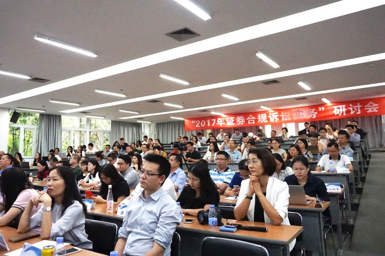 2017年8月25日下午,由广东省律协金融法律专业委员会主办,北京大学国际法学院、广东省律协证券法律专业委员会、广州市律协金融法律专业委员会、广州市律协证券法律专业委员会、深圳市律协金融法律专业委员会、深圳市律协证券法律专业委员会协办的“2017年证券合规诉讼实务简析”专题研讨会在北京大学国际法学院举行。来自全省各地的100多名律师参加了研讨会,全场座无虚席。