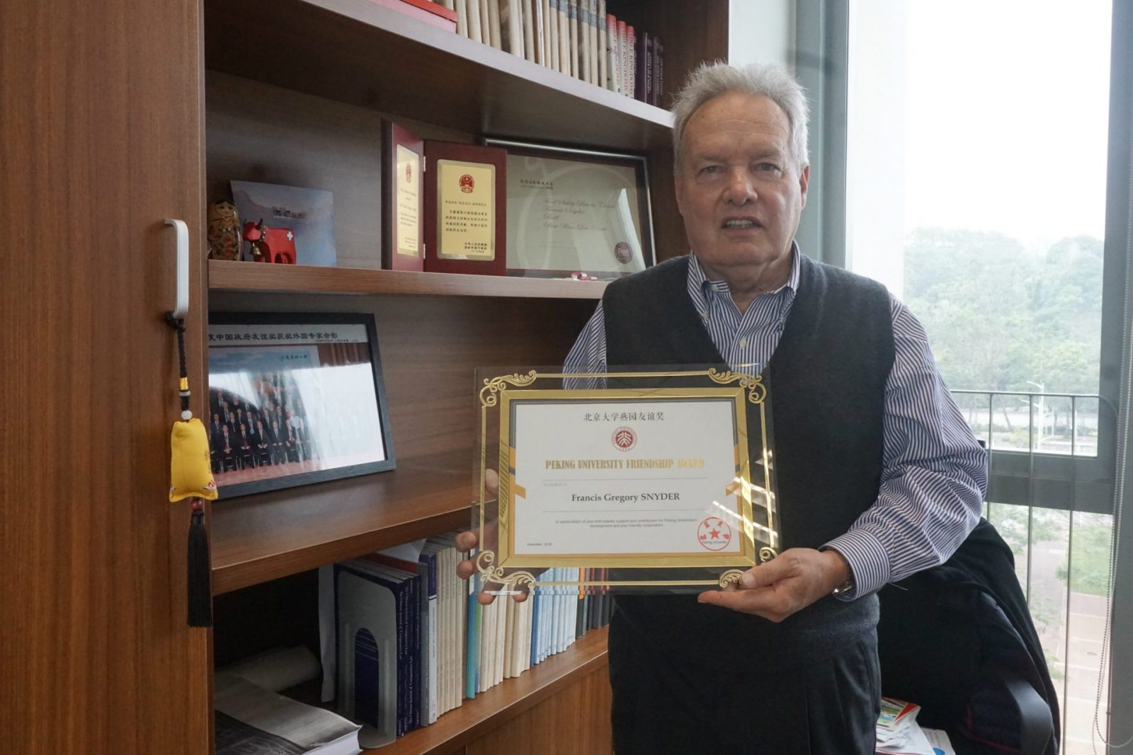 北京大学国际法学院弗朗西斯·施耐德(Francis Snyder)教授在北京大学2019年外国留学生及专家新年联欢会上荣获“北京大学燕园友谊奖”。该奖项的设立,主要对长期在校工作且取得突出成绩的高层次外国专家进行表彰。此次共有不同院系的六位外国专家获得此殊荣。
