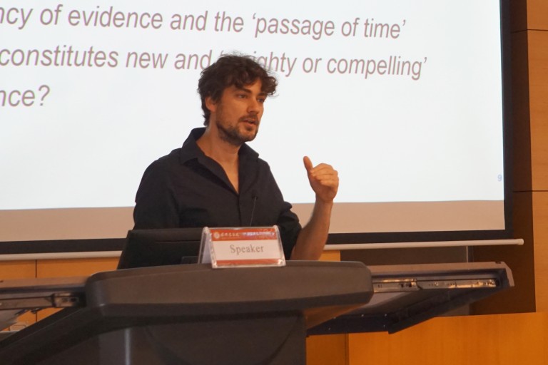 第五单元的主题是“历史与法学的案例研究”,由北京大学国际法学院助理教授Stephen Minas主持。比利时根特大学助理教授Berber Bevernage研究的问题是,2000年以来英国法院对于前大英帝国时期“历史不公正”案件的裁决。他谈到,法官们对于历史不正义(殖民主义)案件谨慎的裁决态度,展现了法官们尝试保持法律的正当性与避免“开放式司法正义”平衡的努力。他详细讲述了不同类型的证据对于历史不公案件的司法裁决中的作用, 强调了记忆与历史情境对于裁决此类案件带来的帮助与挑战,创新性地提出了历史学家作为证人的可能性。 中南财经政法大学教授陈景良从“事实、证据、规则:南宋法官群体是如何断案的”主题入手,结合了诸多中国法制史相关的史料文献,深入浅出地为大家讲解了他的研究成果。他从三个问题出发:(1)南宋理学家法官群体的判案方式;(2)南宋理学家法官群体判案的历史特征;(3)南宋理学家法官群体判案对形式逻辑的追求,从而得出了“事实、证据与规则”,既是现代社会司法审判的三个要素,也是南宋理学家法官群体审理案件、实现司法公平的三个关键点的结论,高度赞扬了宋代理学家法官群体们恰到好处的判决智慧对于中国司法文明史的贡献。 南京审计大学陈苏豪博士发言的主题是“真相能否协商?对于控辩交易在前南斯拉夫国际刑事法庭中的应用的反思”。他回顾了前南刑庭对于控辩交易从全然拒绝到逐渐接受的过程,提出事实在国际刑事犯罪案件审判程序中具有双重作用。他认为控辩交易与寻求真相之间既存在冲突却又有着微妙的平衡点, 控辩交易既能促进确立事实过程,又会为其带来一定的阻碍。 天津师范大学冯金朋博士聚焦于“法学的历史学重审,论苏格拉底审判中的有罪推定”,他首先回顾了苏格拉底审判这一历史事件,从历史学与法学对于事实认定的辨析入手,得出了两者对于证据的理解与认知既有“法史同源”的相似性,又有着极大的差别的结论。他重点陈述了苏格拉底案件中有罪推定应用的特殊性,探讨了苏格拉底被判无罪的可能性假设,研究了柏拉图等人对于苏格拉底求死的动机的解释,在最后提出了尽管苏格拉底的行为极具道德争议性,但他以自己的生命为代价向当时的民众揭露了雅典民主的弊端。