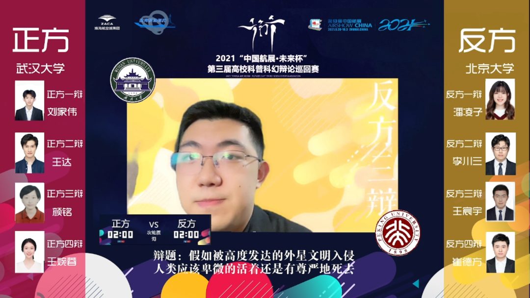 9月26日,“中国航展·未来杯”第三届高校科普科幻辩论巡回赛(下简称“巡回赛”)决赛落下帷幕,北京大学战胜武汉大学成功卫冕,我院2019级王宸宇获最佳辩手。