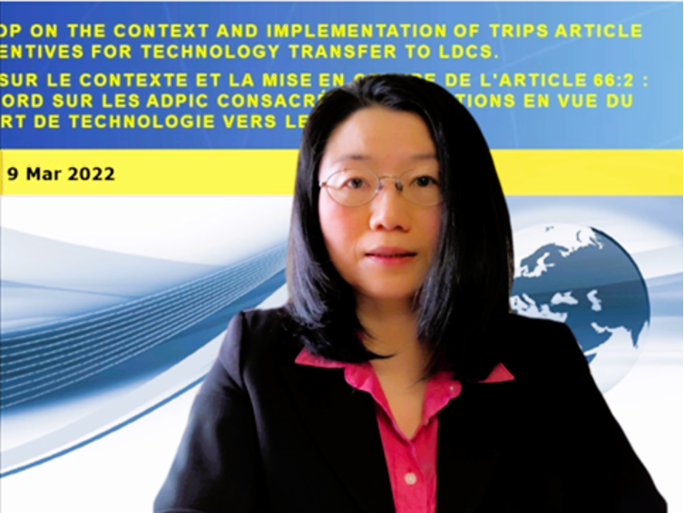 近期,我院Joy Xiang教授应世界贸易组织(WTO)TRIPS团队邀请在世贸组织研讨会上围绕“面向最不发达国家(LDCs,Least developed country)的技术转让”这一话题展开研讨。研讨会为期三天,会上讨论了如何落实世贸组织《与贸易有关的知识产权协议》第66.2条以推动向最不发达国家的技术转让。多位来自最不发达国家、主要发达国家和国际机构的代表参与了讨论,包括联合国气候变化框架公约、联合国技术银行、联合国环境规划署、世界卫生组织和世界知识产权组织的成员。
