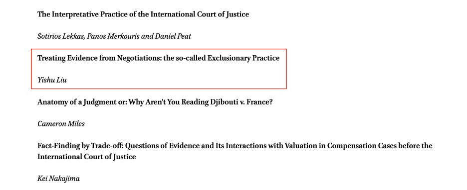 2023年12月15日,《马克斯·普朗克联合国法年鉴》(Max Planck Yearbook of United Nations Law,以下简称“《年鉴》”)2022年第26卷将公开出版。本卷《年鉴》的主题为“国际法院75周年”( The International Court of Justice at 75: an Assessment),收录了与国际法院工作有关的文章,作为对法院75周年的纪念。北京大学国际法学院(英文简称“STL”)四年级学生刘燚姝的文章《处理谈判证据:所谓的证据排除实践》(Treating Evidence from Negotiations: the so-called Exclusionary Practice)被本卷收录。