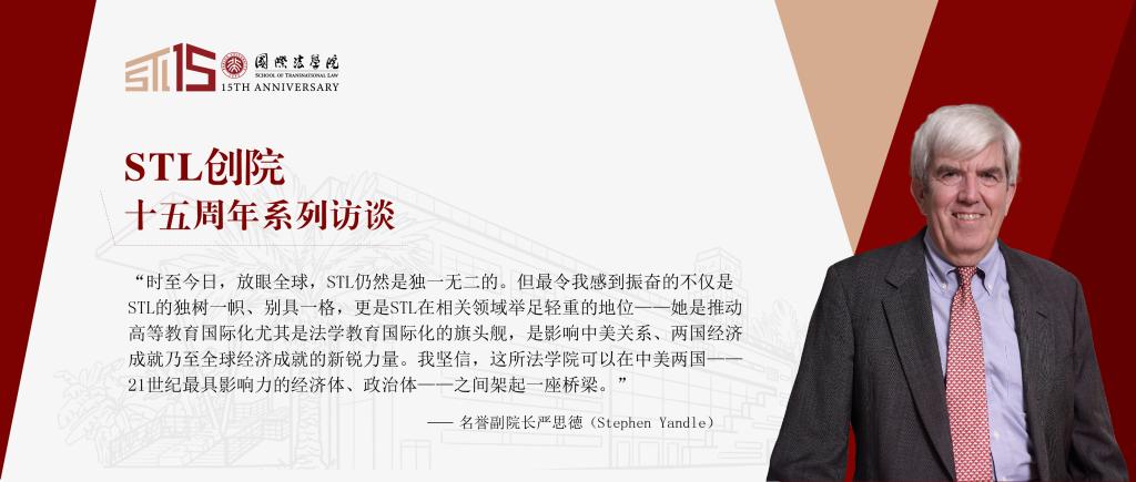 “时至今日,放眼全球,STL仍然是独一无二的。但最令我感到振奋的不仅是STL的独树一帜、别具一格,更是STL在相关领域举足轻重的地位——她是推动高等教育国际化尤其是法学教育国际化的旗头舰,是影响中美关系、两国经济成就乃至全球经济成就的新锐力量。我坚信,这所法学院可以在中美两国——21世纪最具影响力的经济体、政治体——之间架起一座桥梁。”