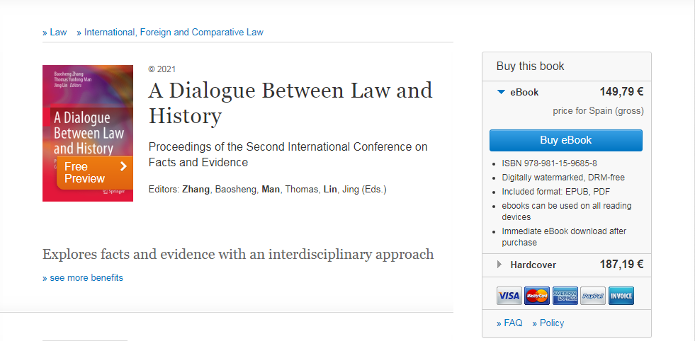 近日,由北京大学国际法学院实务教授满运龙合作编辑的新书《法学与历史学的对话——第二届事实与证据国际研讨会论文集》出版(英文,斯普林格出版社)。此书由满教授与中国政法大学证据科学研究院名誉院长张保生教授...