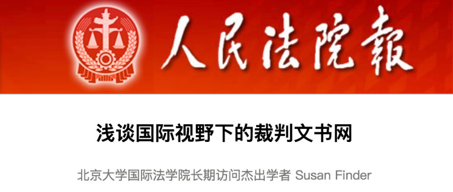近日,我院常驻杰出访问学者Susan Finder老师受邀从国际角度对裁判文书网的影响与发展发表文章,并在人民法院报和最高人民法院官方微信公众平台上发布。 裁判文书网是最高人民法院在2014年根据《最高人民法院关于人民...