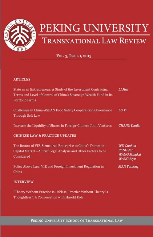 《北京大学跨国法律评论》(Peking University Transnational Law Review)最新一期刊物Volume 3, Issue 1 (2015)于近日出版。您可点击此处以查阅本期刊物电子版。 《北京大学跨国法律评论》(“《法律评论》”)是...