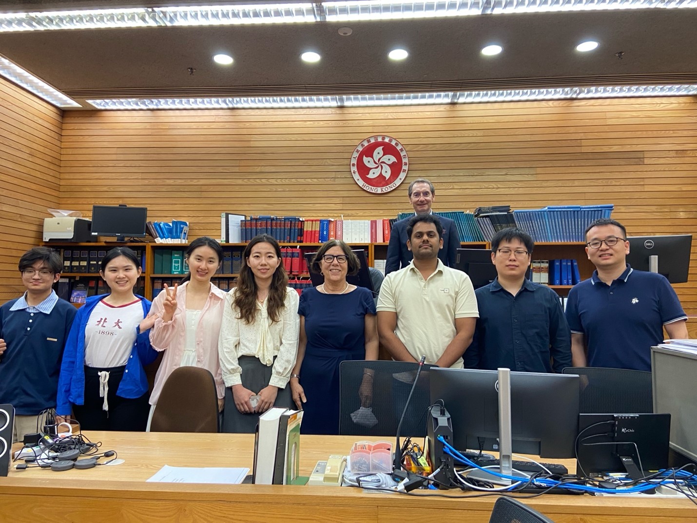 On June 20, Susan Finder, Distinguished Scholar in Residence of STL, led students of her "Comparative Courts" course to visit the High Court of the Hong Kong Special Administrative Region (Hong Kong), where they had a wide-ranging and lively discussion with Justice Jonathan Harris, Judge of the High Court and President of the Hong Kong Competition Tribunal. The discussion took place in Justice Harris' courtroom, providing students with the opportunity to observe the differences between courtrooms in the Chinese mainland and in the Hong Kong SAR.. Justice Harris gave students a detailed introduction to the Hong Kong SAR’s court system. He discussed some of the similarities and differences between specific aspects of the two court systems, including the slower digitalization of the court system, when compared to Shenzhen. Justice Harris drew on his 40 plus years as a legal professional in Hong Kong to provide historical reasons for the differences. Students also asked about the practicalities of the operation of Hong Kong’s bilingual legal system. Justice Harris also discussed unique aspects of the Hong Kong Competition Tribunal.