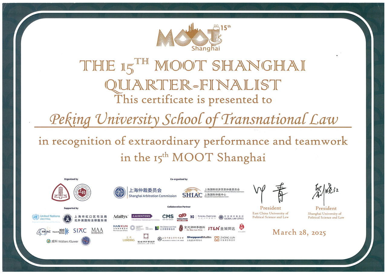 Since its founding in 2008, Peking University School of Transnational Law (STL) has remained committed to its core mission of cultivating practice-oriented, high-level legal professionals urgently needed by the nation in the field of foreign-related legal affairs. International moot court competitions serve as a key platform through which STL advances this national strategy. The School has long encouraged students to participate in a wide range of international moot court competitions and provides comprehensive support, aiming to create high-quality opportunities for students to engage firsthand in international legal practice, while helping them unlock their growth potential and stimulate intrinsic motivation for learning.
